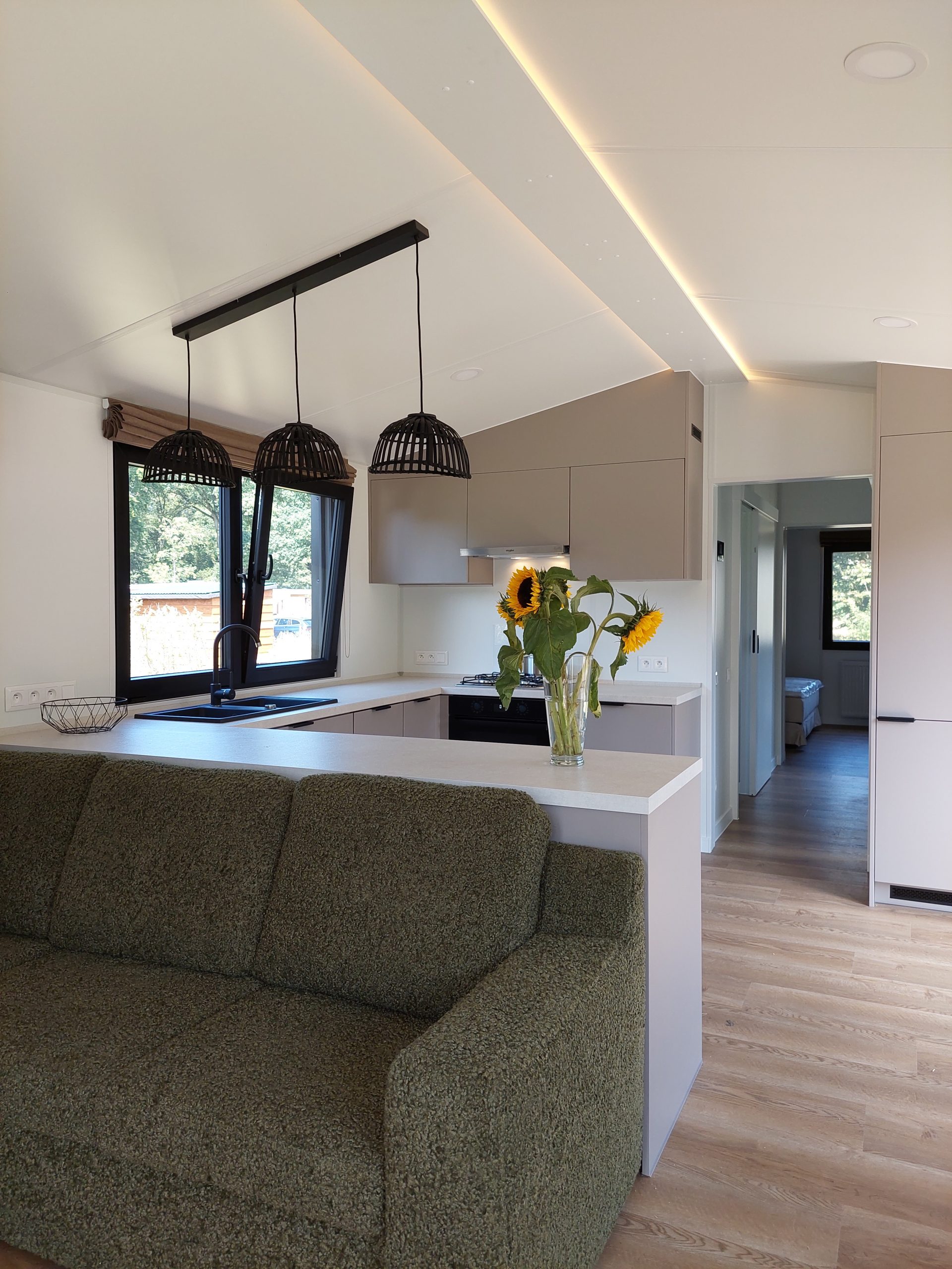 Deze gloednieuwe mobiele chalet (‘Lark Murano’ – 2025) is stijlvol ingericht en is op zoek naar een eigenaar die luxe en comfort belangrijk vindt. Via een ruime keuken met alle nodige toestellen (incl. vaatwasser) kom je in een ruime gezellige zithoek die via de grote raampartijen overladen is met licht. De eetruimte geeft uit op de uitgestrekte zonnige tuin. De slaapkamer biedt naast het comfortabele bed zeer veel kastruimte. Een aparte bureau met ingemaakte kasten is een leuke extra! De badkamer is uitgerust met een inloopdouche, lavabo, veel kasten en ruimte voor een wasmachine. Aparte hangtoilet is voorzien. De mobiele chalet is uitgerust met centrale verwarming op gas, bevat degelijke toestellen (Whirlpool, Grohe, Vaillant ketel,..) en is zeer goed geïsoleerd.